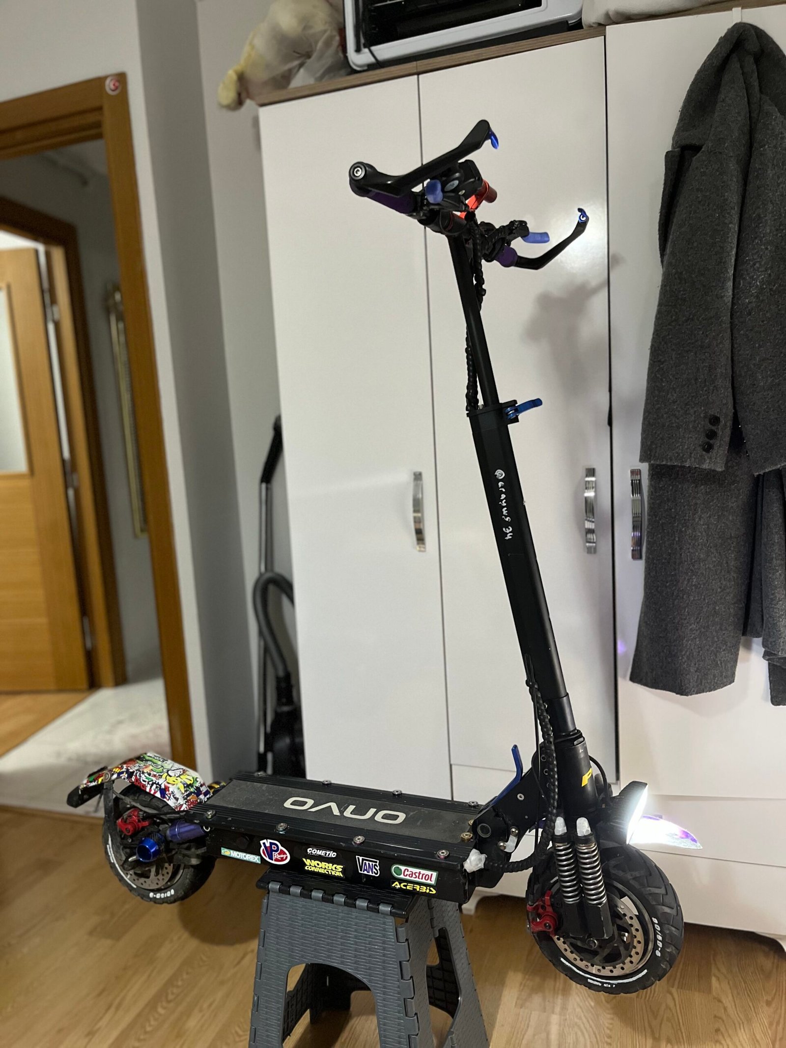 Cihazım tertemiz üzerinde yeni 10k ya Samsung pilleri dizdim 13 x plus büyüklüğünde yeni takozlar aldım yeni manet koruma ön desenli çamurluk arka desenli çamurluk ön far(selektörlü,çakarlı ) arka far gidon üstü ek ön arka fren kaliperleri ön lastik arka çakar renkli bunların hepsi yeni alınmıştır ve scooterimin üstünde olup saymadığım bi çok şey yani zararına satıyorum kaçmaz scooter
